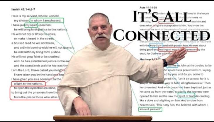 Father Scott connects the dots between today’s powerful scripture readings. He explores the Second Reading from the Book of Acts, where Peter realizes God’s message is for all nations, not just the Jewish people. This connects deeply to the Prophet Isaiah’s description of the "Servant" who brings justice without violence, and ultimately to the Gospel account of Jesus’ baptism.